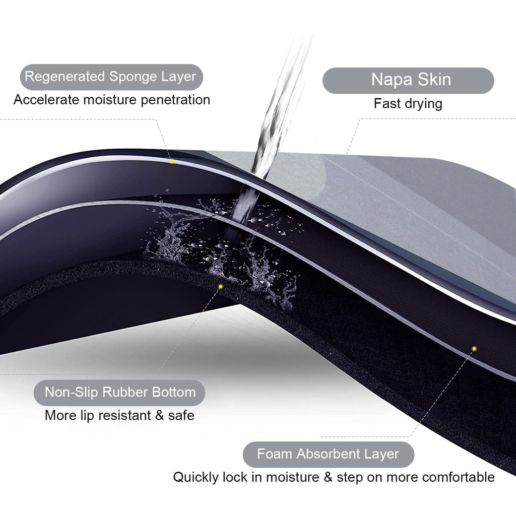 STRONG NON-SLIP :- Our non-slip floor mats are made of rubber + tech velvet, which dries faster than ordinary floor mats. Non-slip rubber bottom firm grip for increased safety and stability. Super absorbent floor mat. Absorbent bath mats dry quickly.