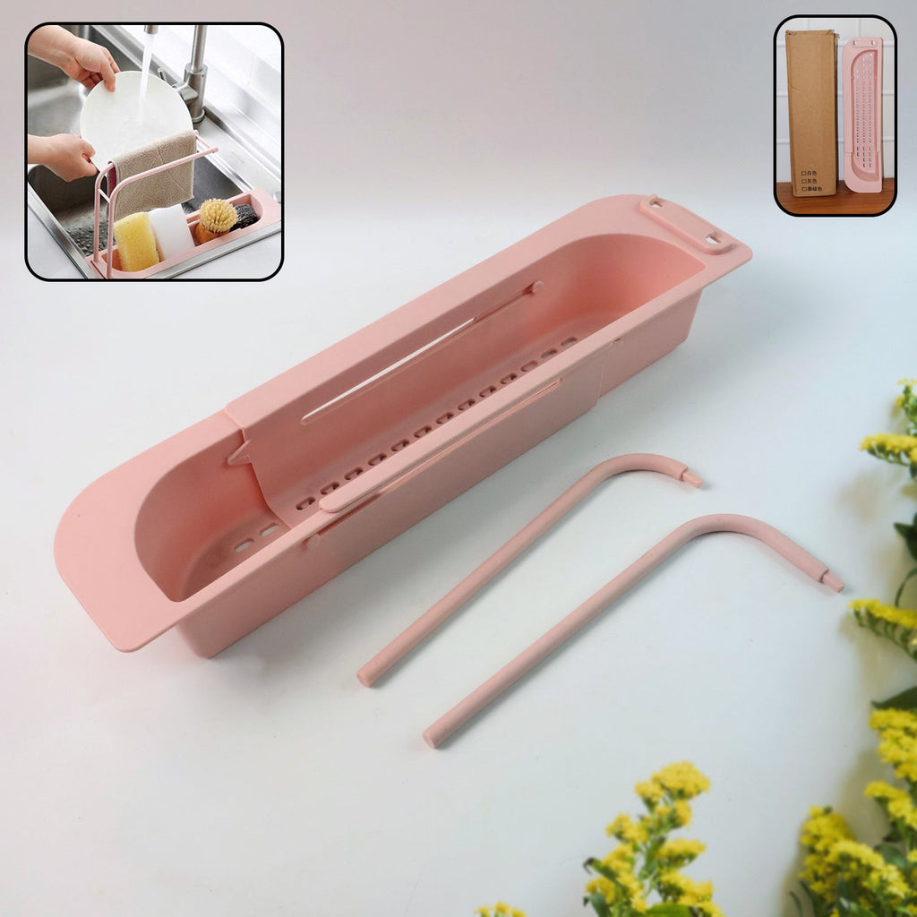 Bring instant order to your sink area with this expandable over-sink caddy. The deep tray keeps dish sponges, scrubbers, soap dispensers and brushes upright, while the elevated twin towel bar lets cloths dry fast without touching the countertop. Vented base helps water drain away into the integrated drip area, reducing odor and slime buildup. The sliding length adjustment fits most standard sinks and the slim profile leaves ample washing space. Built for daily kitchen use, it’s easy to lift out and wipe clean, making sink maintenance quick and fuss-free.