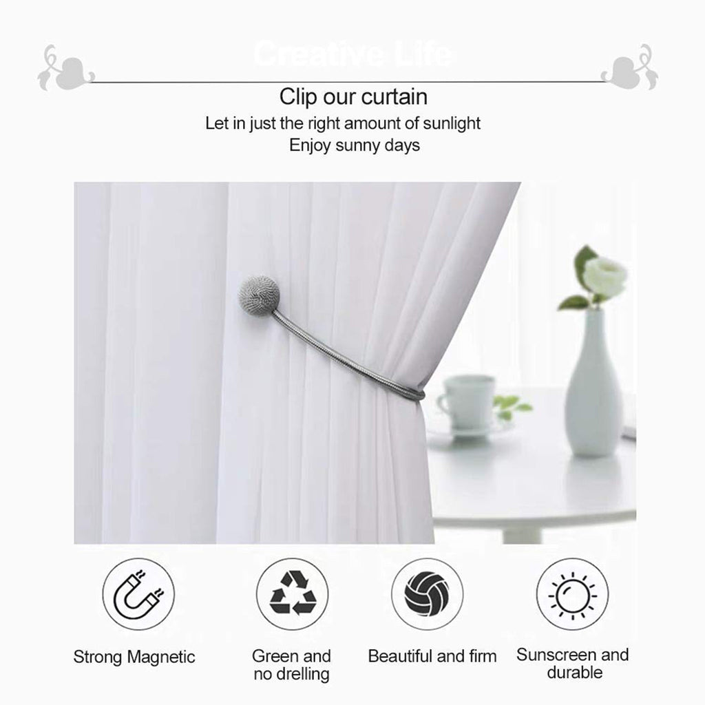 Style and secure your curtains in seconds—no hooks, screws or wall damage. These premium magnetic curtain tiebacks feature a soft braided polyester rope and powerful hidden magnets inside the twin ball heads. Simply wrap around the curtain and snap the balls together for a neat, designer look. The flexible cord adjusts to thin sheers or heavy blackout drapes, while the smooth satin sheen adds a touch of elegance to living rooms, bedrooms and offices.
