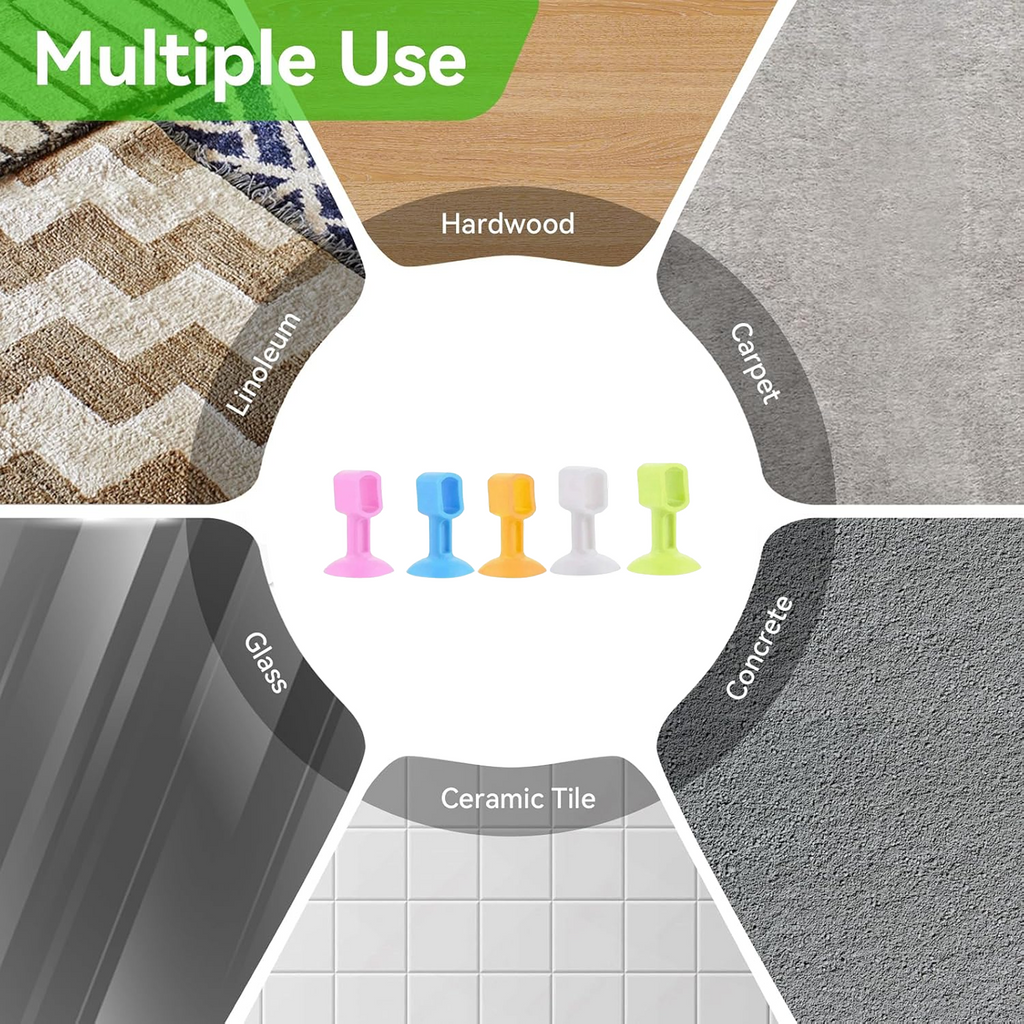 You want to keep door open, but a slight breeze would come through the door closed, also the naughty kid will close the door roughly, which will cause the damage to door and wall. Now, silicone door stop can keep door open. Suction cups can show strong adsorption capacity on smooth walls such as glass, metal, marble, ceramic tiles, etc., but it is difficult to show strong adsorption capacity on dry or rough walls such as wallpaper, lime and putty.